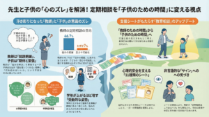 令和7年度調査研究(教育相談部) 2026年2月27日 最終更新日時 : 2026年2月27日 企画調整部 ◆研究紀要 児童生徒理解を深める教育相談の在り方に関する調査研究(2年次) —児童生徒理解の視点に立った定期相談につながる支援シートの提案— ◆研究概要図 ◆定期相談サポートシート集